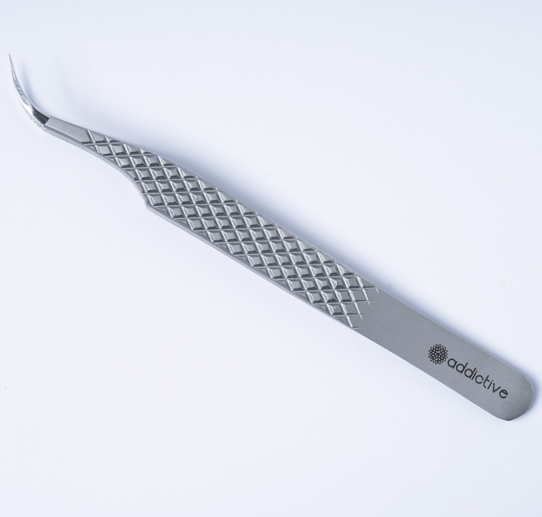 Η TW-03 είναι η πολυλειτουργική Curved (Καμπύλη) λαβίδα της Addictive Lashes, σχεδιασμένη για να προσφέρει απόλυτη ασφάλεια και σταθερότητα. Χάρη στην αντιολισθητική λαβή Diamond Grip, αποτελεί την No1 επιλογή για αρχάριες lash artists. Χρησιμοποιείται εξίσου αποτελεσματικά για διαχωρισμό και για δημιουργία fans.